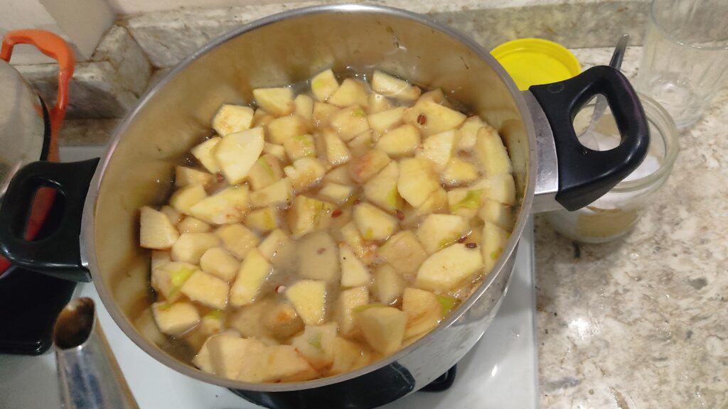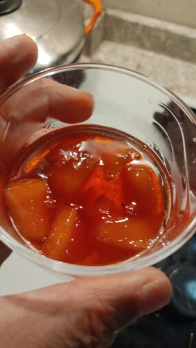 4. Ayvaları ve ayva çekirdeklerini tencereye ekleyin. Çekirdekler marmelata doğal kırmızımsı bir renk verir.
